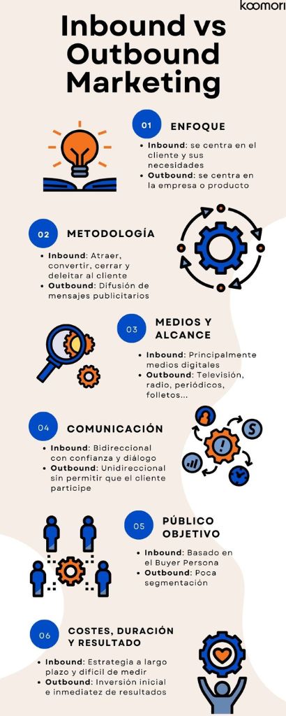 El Outbound es más tradicional y se utiliza en medios como la televisión, folletos publicitarios o periódicos.