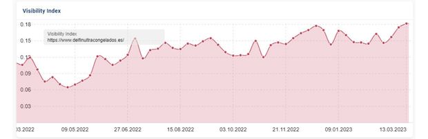 Antes de trabajar con nosotros apenas tenían un 0,06 y actualmente tenemos una subida exponencial llegando casi al 0,18. Esto quiere decir, que gracias a la estrategia SEO aplicada a este proyecto hemos conseguido triplicar su visibilidad en apenas un año.
