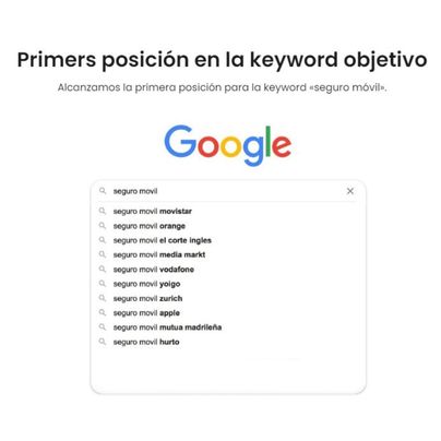 Como puedes ver, conseguimos la primera posición para la keyword “seguro móvil” posicionando por encima de grandes marcas.