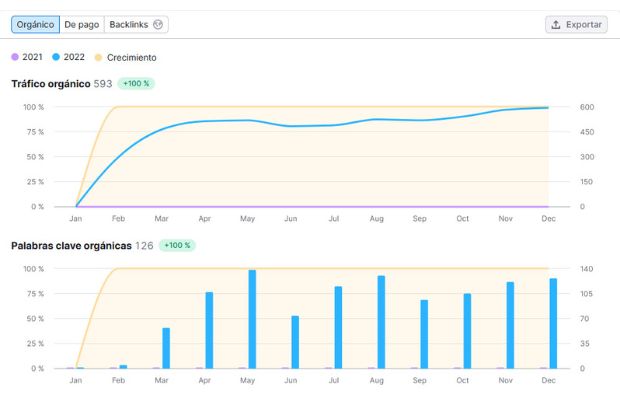 En otro tipo de herramientas podemos hacer una estimación de los clics a través del tráfico orgánico, que nos contabiliza la cantidad de usuarios que han entrado al enlace de nuestro sitio web cuando le ha aparecido como resultado de una búsqueda.