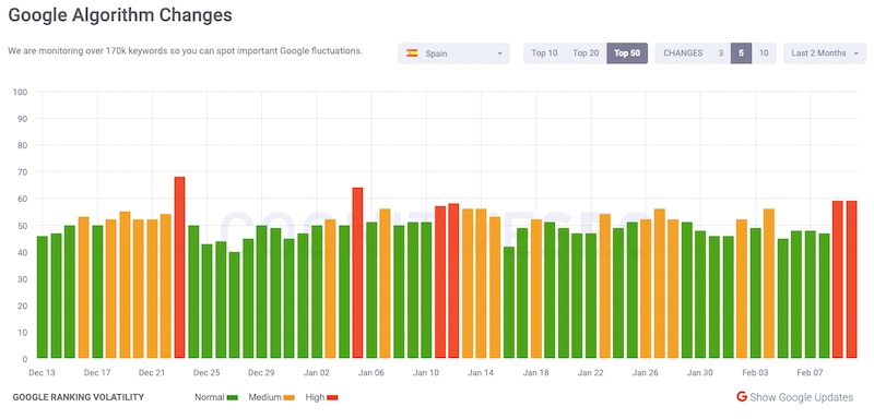 Existen diversas herramientas para comprobar cambios bruscos de posiciones en las SERP a raíz de los updates de Google. Una de ellas es Algoroo, aunque SEMRush y Sistrix también cuentan con sus propias herramientas.